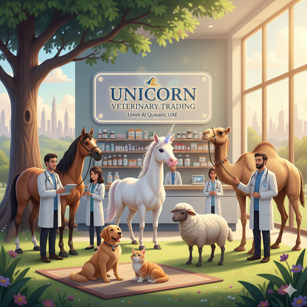 Unicorn Veterinary Trading is a premier distributor of animal health products, strategically based in the Umm Al Quwain Free Trade Zone, UAE. We bridge the gap between global pharmaceutical innovators and local veterinary professionals. We specialize in the trading of veterinary medicines, vaccines, advanced diagnostics, and premium animal feeds. Our robust B2B network serves veterinary clinics, hospitals, prestigious horse studs, camel racing farms, and commercial livestock producers across the region. By prioritizing quality and compliance, we ensure that animals from champions to companions receive the best care possible.